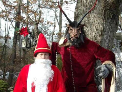 ABOVE: Saint Nicholas and Krampus often work as a team. Saint Nicholas rewards the good children and Krampus punishes the bad.